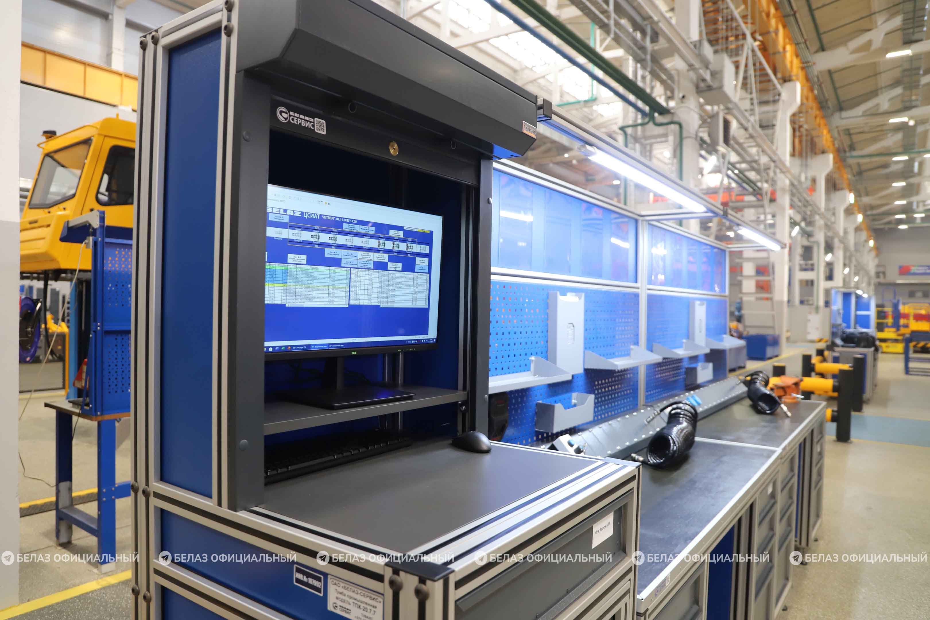 – Длина модернизированной конвейерной ленты выросла до 130 метров, и сейчас на ней могут одновременно находиться не шесть, а девять самосвалов, что позволяет более детально разграничить этапы сборки, – рассказывает Андрей Ковалев. – В цехе созданы комфортные и безопасные условия труда. Рабочие места имеют современный вид и оснащение. На каждом из 9 постов установлены компьютеры, позволяющие отслеживать данные о собираемой технике: модель самосвала, номер шасси, процент готовности сборки на позиции и другую важную информацию.
